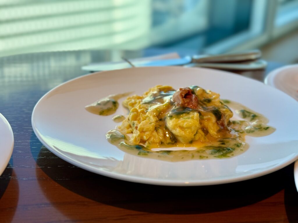 ラウンジ限定「スクランブルエッグ 雲丹とあおさ海苔のソース」登場。