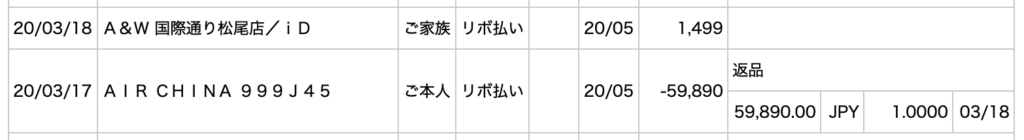 3月17日 支払いクレジットカードに エアチャイナから返金がありました。払い戻された金額は 実際に提示された全額にあたる59,890円でした。無事に払い戻しがあり エアチャイナの株 ストップ高です。笑