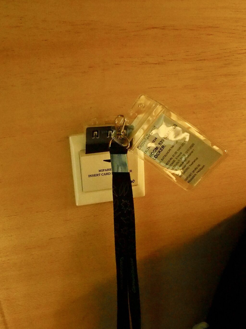 チェックインを済ませると 上記のように名札(カードキー)と宿泊セットがもらえます。