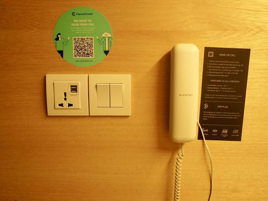 カプセル内に入ったら チェックイン時にもらったカードキーを壁の専用ソケットに差し込みます。そうすることで カプセル内の電気が点灯し 充電をすることができるようになります。