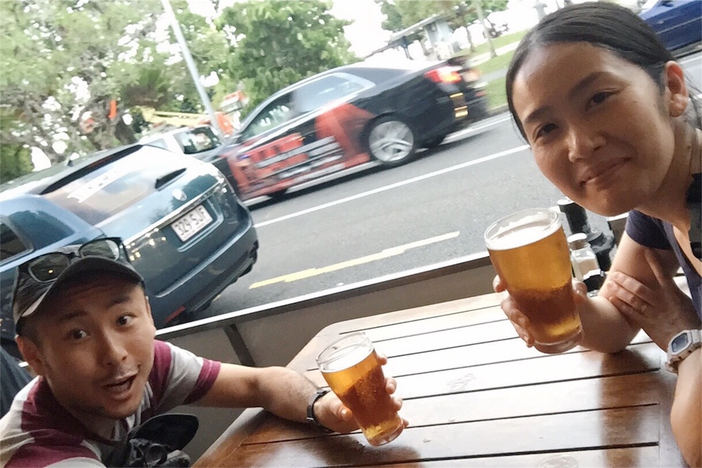 飛行機で2,000キロ大陸を縦断して ケアンズに着きました! 早速 ビール!!