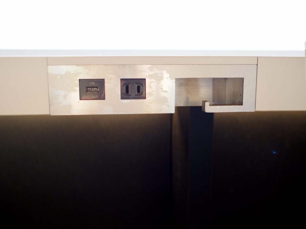 各座席には充電用のコンセントとUSBポートがあり 仕事をしながら充電ができる環境が整っています。