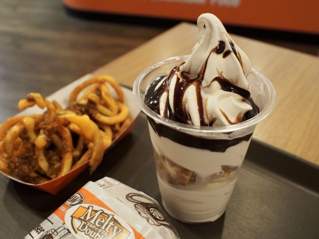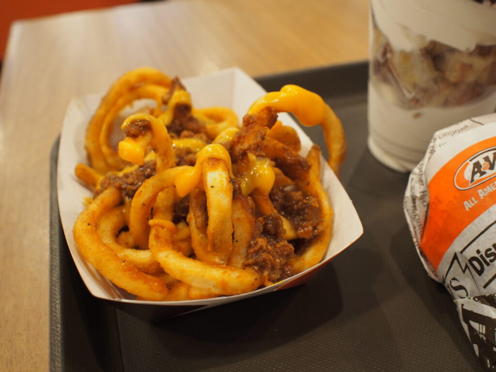 くるっと丸まったポテトフライに A&Wオリジナルのスパイシーなコニーソース+とろりとしたチーズをトッピングしています。ポテト好きの妻は ひと目見て即決のメニューでした(笑)。