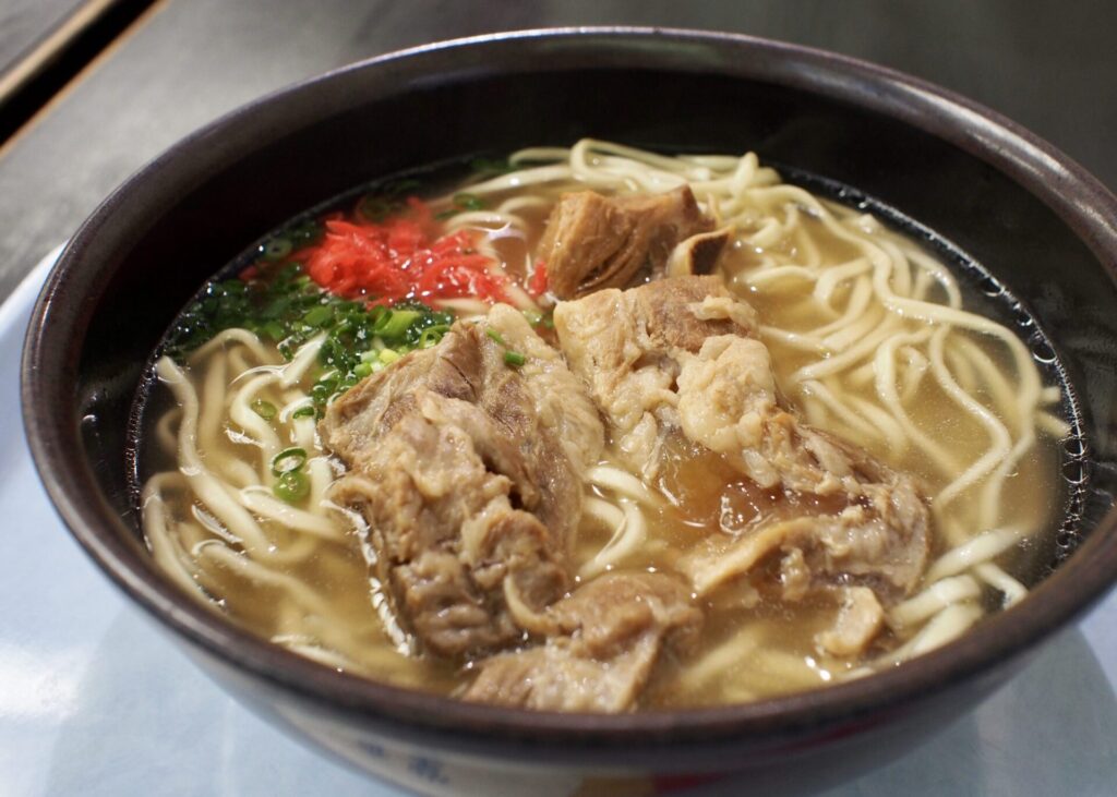また 太めの素朴な麺は弾力が豊かで 食べ応えも十分。もぐもぐ噛んでいるうちに 豊かな小麦の味わいが口に広がります。ソーキは 噛むとほろほろに崩れるほどの柔らかさ。これは 具材までしっかりと調理されていますね。