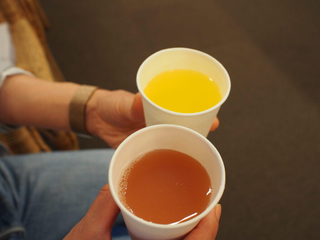 いただいたのは シークワァーサージュースとグァバジュース。どちらも甘さ控えめで とてもフルーティー。さっぱりと飲むことができました。